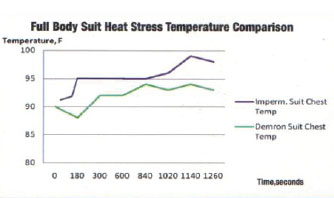 其它生物化學(xué)防護(hù)服采用絕緣材料制成,散熱性能很差,工作人員如果長(zhǎng)期穿戴這類防護(hù)服,內(nèi)部溫度將變得極高。Demron使用特殊材料,可以進(jìn)行被動(dòng)散熱,工作人員即使長(zhǎng)期穿戴,也不會(huì)有任何不舒適的反應(yīng)。