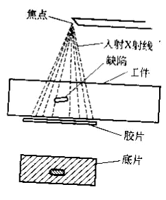 射線照相法是根據(jù)被檢工件與其內(nèi)部缺陷介質(zhì)對射線能量衰減程度的不同,使得射線透過工件后的強度不同,使缺陷能在射線底片上顯示出來的方法。如圖2所示,從X射線機發(fā)射出來的X射線透過工件時,由于缺陷內(nèi)部介質(zhì)對射線的吸收能力和周圍完好部位不一樣,因而透過缺陷部位的射線強度不同于周圍完好部位。把膠片放在工件適當(dāng)位置,在感光膠片上,有缺陷部位和無缺陷部位將接受不同的射線曝光。再經(jīng)過暗室處理后,得到底片。然后把底片放在觀片燈上*可以明顯觀察到缺陷處和無缺陷處具有不同的黑度。評片人員據(jù)此*可以判斷缺陷的情況。