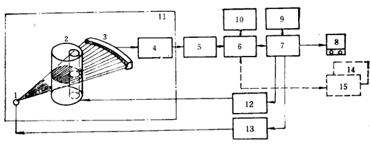 計算機斷層掃描技術(shù),簡稱CT(Computertomography)。它是根據(jù)物體橫斷面的一組投影數(shù)據(jù),經(jīng)計算機處理后,得到物體橫斷面的圖象。其裝置結(jié)構(gòu)如圖4所示。