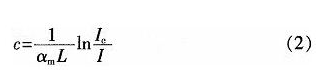 式中:αm為摩爾分子吸收系數(shù);c為待測氣體濃度;L為光和氣體的作用長度(傳感長度)。對式(1)進行變換,得: