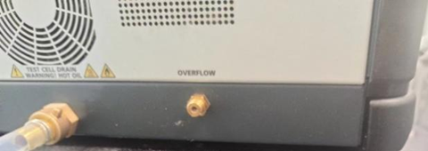 為保證試驗結(jié)果準(zhǔn)確,每次試驗都需要清洗電極,用測試油沖洗2-3次,每次測試結(jié)束后也會自動排油(可設(shè)置,也可手動排油)。排油口需平放置桌面,避免排油時油液倒流使油從溢油口溢出。